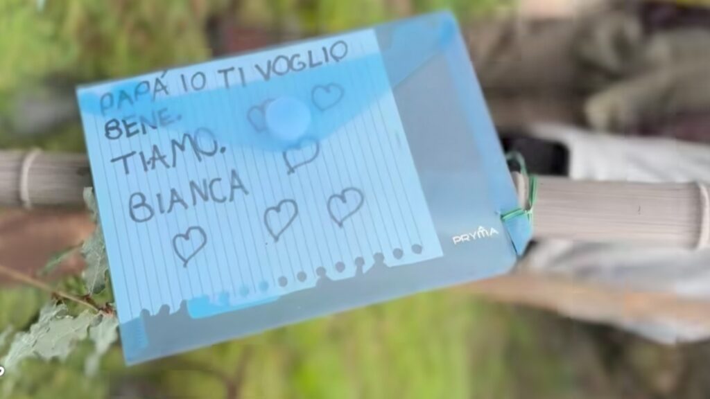 Ed il messaggio della figlia più piccola, Bianca, 7 anni compiuti da qualche giorno: «Papà ti voglio bene, ti amo», lasciato accanto alle piantine esili, che di amore si nutriranno, per crescere e diventare forti.