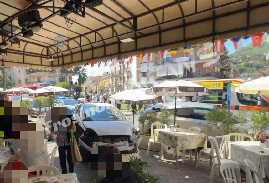 Momenti di paura questa mattina in pieno centro a Cassino. In Largo Dante, un’auto è improvvisamente piombata sul dehor esterno del ristorante “Risciò Risto Pub”.