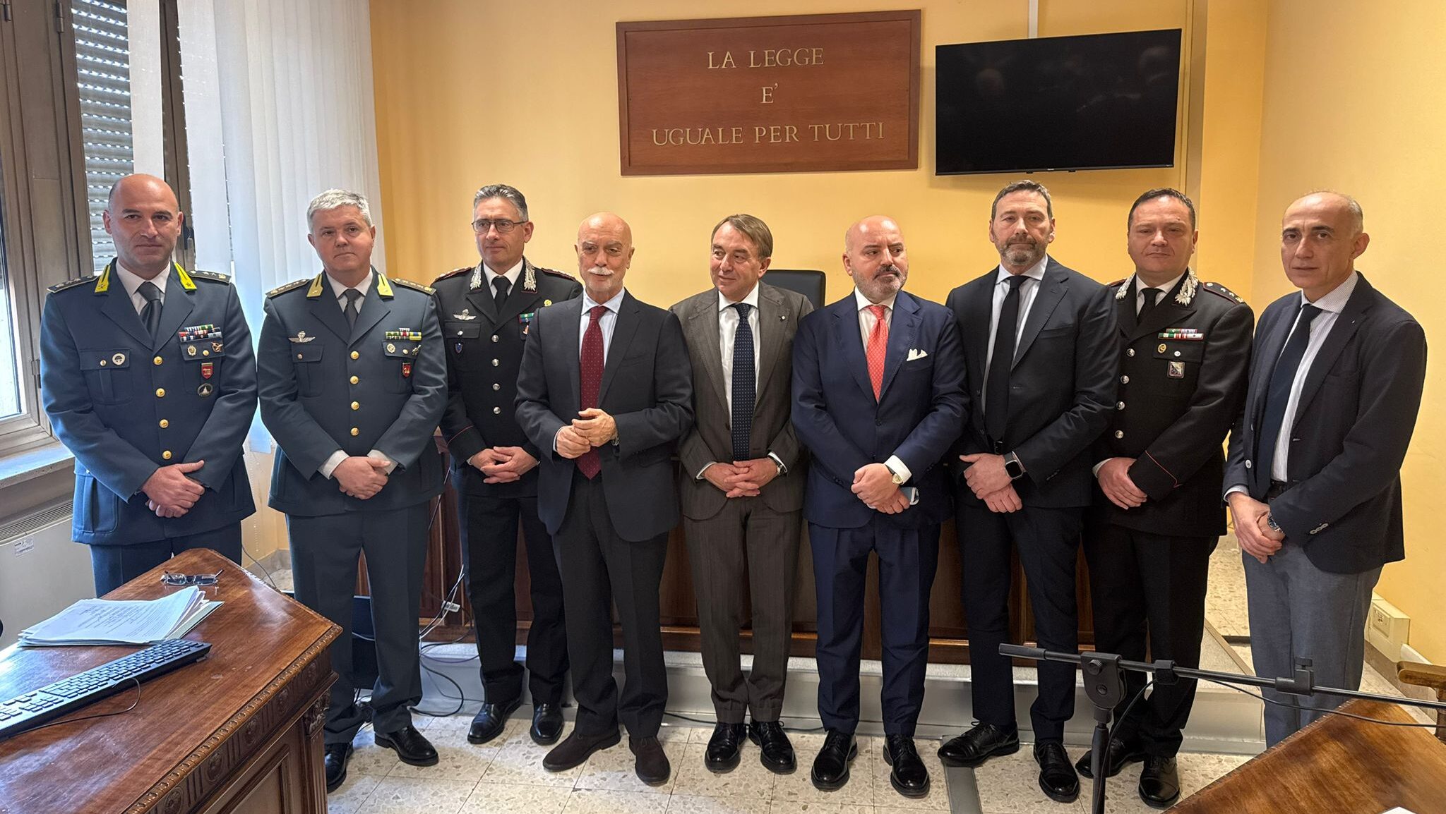 Su iniziativa del Procuratore della Repubblica dr. Carlo Fucci, alla presenza dei vertici provinciali delle Forze dell’Ordine, tra cui il Questore di Frosinone dr. Stanislao Caruso, il Vicario del Questore di Latina dr. Giorgio Seminara in rappresentanza del Questore dr. Fausto Vinci, il Comandante provinciale della Guardia di Finanza di Frosinone Colonnello Stefano Boldrini, il Ten. Colonnello Paolo Zito in rappresentanza del Comandante Provinciale della Guardia di Finanza di Latina Generale di Brigata Giovanni Marchetti, il Comandante provinciale dei Carabinieri di Frosinone Colonnello Gabriele Mattioli e il T. Colonnello Salvatore Pascariello in rappresentanza del Comandante provinciale di Latina Colonnello Cristiano Angelillo, nonché i vertici della Camera di Commercio di Caserta e di Frosinone-Latina — rispettivamente il Presidente dr. Tommaso De Simone e il Segretario Generale dr. Pietro Viscusi in rappresentanza del Presidente dr. Giovanni Acampora — è stato formalizzato l’accordo.