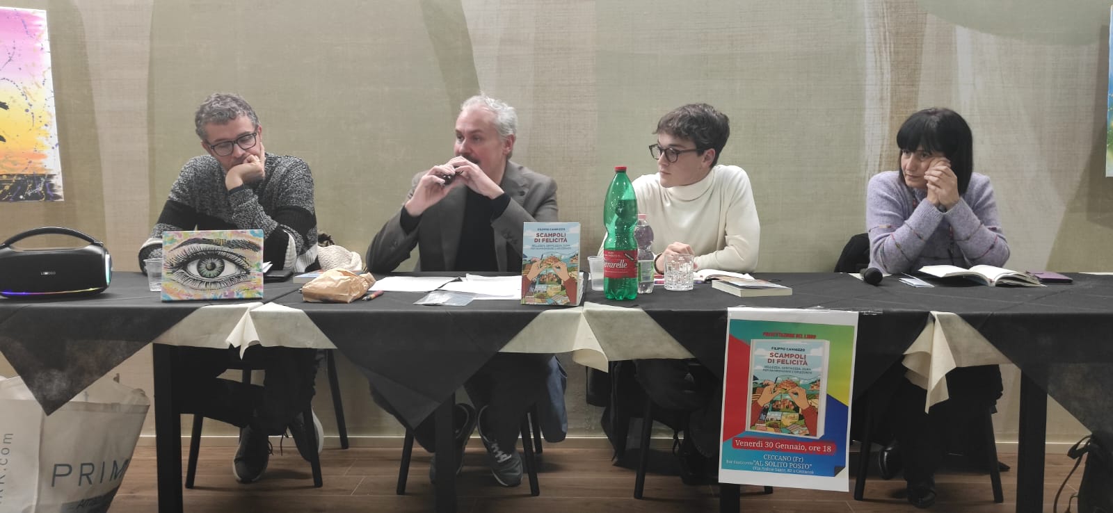 Un successo inaspettato di pubblico ha reso anche Ceccano la città della felicità per un giorno grazie all’intervento del filosofo Filippo Cannizzo che venerdì 30 gennaio ha presentato il suo libro “Scampoli di felicità. Bellezza, gentilezza, cura per rammendare l’orizzonte” presso il bar/pasticceria “Al Solito Posto”.