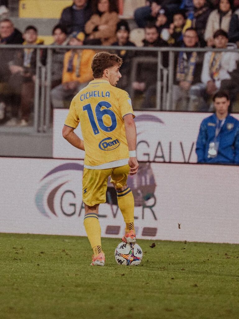 Serie B – C’è chi arriva piano e chi, invece, lascia tracce nette anche quando parla sottovoce. Matteo Cichella appartiene alla seconda categoria. Nato nel 2005, cresciuto in un vivaio prestigioso come quello della Roma e approdato a gennaio al Frosinone a titolo definitivo nel 2024 (con i giallorossi che hanno mantenuto una percentuale sulla futura rivendita), il giovane centrocampista ha bruciato tappe e diffidenze. Play moderno, pulito nelle giocate, capace di leggere il gioco con anticipo e di accompagnare l’azione fino alla conclusione, Cichella ha mostrato una maturità fuori scala per l’età. Destro naturale, ma a suo agio anche col sinistro, è diventato una presenza sempre più credibile nel gruppo passato da Vivarini a Greco, poi a Bianco e oggi affidato a mister Alvini.