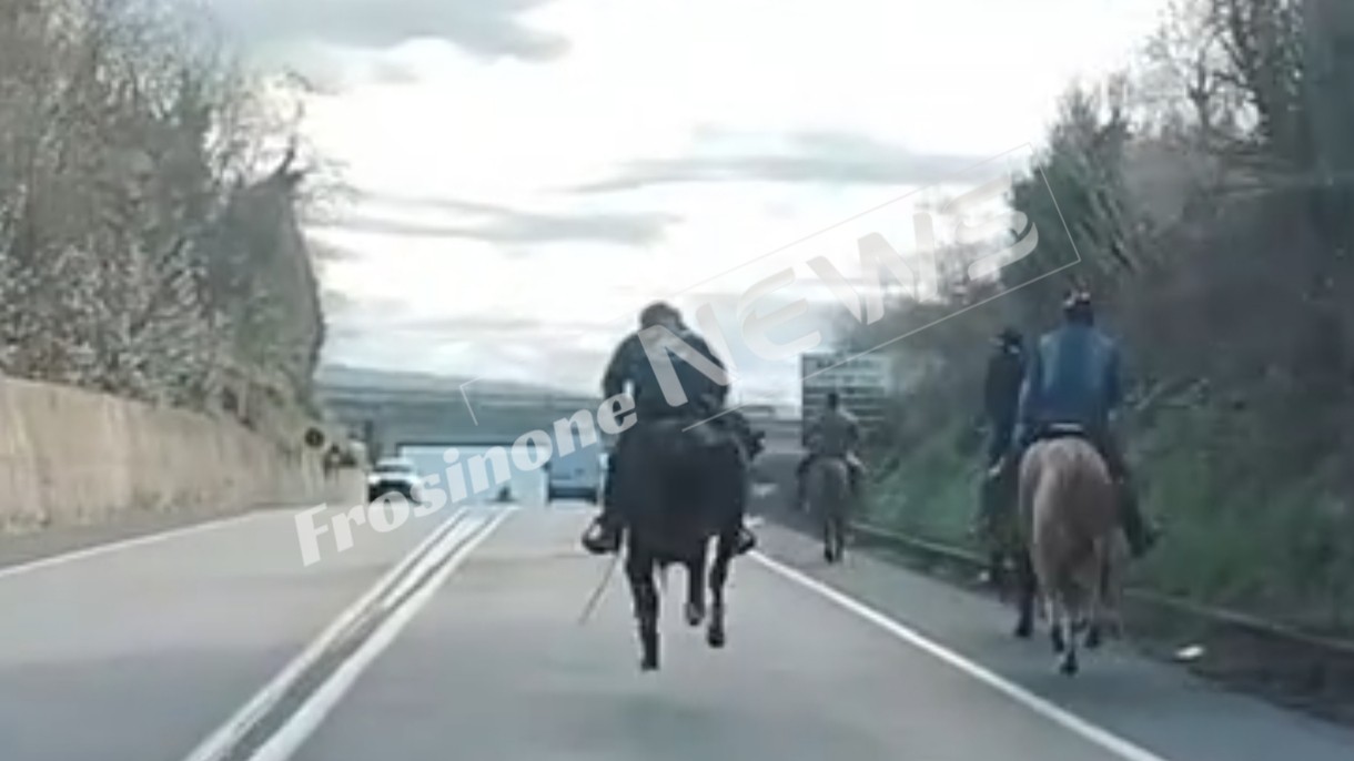 Il filmato è stato realizzato da un automobilista che, nel pomeriggio di ieri, percorreva l’Anticolana e si è trovato dinanzi prima un cavallo lanciato al galoppo che sorpassa il destriero che lo precede sulla corsia d’emergenza mentre, sull’altro lato, un furgone percorre la medesima direzione. Ed ancora, qualche centinaio di metri più avanti, ne supera altri tre portandosi al centro della corsia di marcia, sempre al galoppo. Nel rientrare il povero animale scivola, una della zampe perde l’aderenza, non regge sull’asfalto e slitta pericolosamente: a questo punto il video si interrompe, sicuramente anche chi filmava avrà temuto il peggio, non sappiamo cosa sia accaduto dopo.