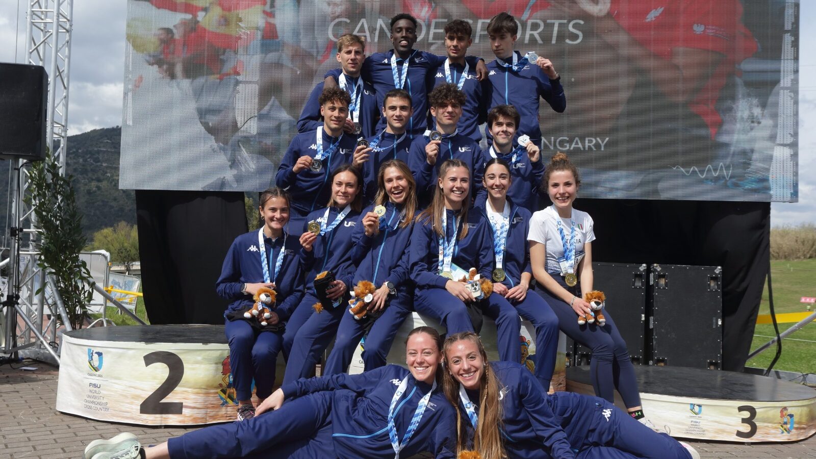 I Campionati Mondiali Universitari di Corsa Campestre edizione 2026 si sono conclusi in un tripudio di gioia, canti e balli in una Piazza Diamare gremita di giovani provenienti da ben 25 Paesi di tutto il mondo. Una domenica intensa che è iniziata sui campi della Folcara, dove si sono svolte: la staffetta corta, che ha visto sul podio il Belgio al primo posto, l’Italia al secondo, la Germania al terzo e la staffetta lunga che ha regalato l’oro alla Francia, l’argento alla Spagna ed il bronzo all’Italia.