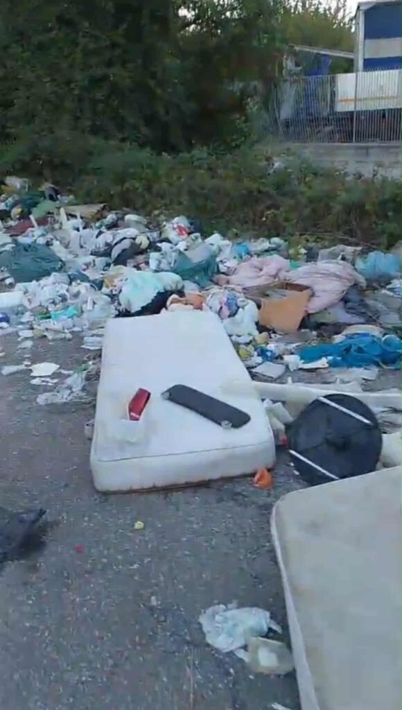 La nostra redazione ha più volte raccolto le segnalazioni dei cittadini rispetto alla discarica abusiva in questione, interessando le autorità: già ad inizio dell’anno scorso abbiamo ampiamente documentato i cumuli di rifiuti di ogni genere abbandonati lungo la strada, dall’immondizia ordinaria agli scarti di lavorazione industriale, come anche pneumatici, elementi di arredo, materassi, bancali e via dicendo. Tutto questo su una delle traverse chiuse di via Armando Vona, lo stradone ASI 7 meglio noto come “asse attrezzato”.