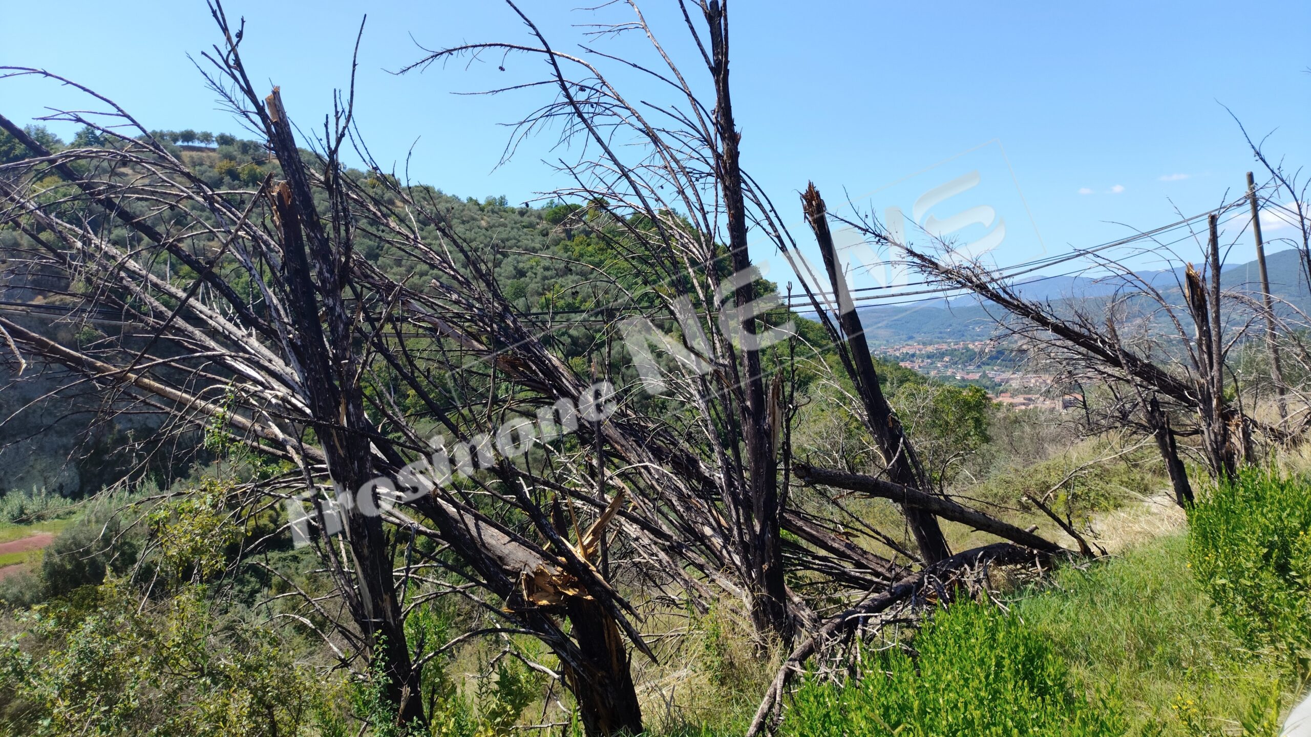 Transitando sulla SP92 via “Tulliana”, la strada provinciale che collega le città di Arpino ed Isola del Liri, all’altezza della segheria poco sotto l’abitato di Vallefredda, ci sono alcuni cipressi letteralmente divorati dalle fiamme: i tronchi arsi sono stati successivamente spezzati dalle raffiche di vento. Questi, numerosi, si sono inclinati a valle, poggiandosi sui cavi elettrici, tra un palo e l’altro, nella zona sottostante alla carreggiata. Considerato che gli alberi “tizzoni” sui fili della corrente potrebbero essere causa di danni e disservizi vari, l’area deve essere messa in sicurezza, ripulita dai tronchi in bilico, affinché si garantisca anche l’incolumità di quanti transitano sotto. La circostanza è stato portata all’attenzione degli amministratori e della Polizia Locale della città di Arpino, affinché l’ente provinciale ed il gestore della rete si interessino alla bonifica.