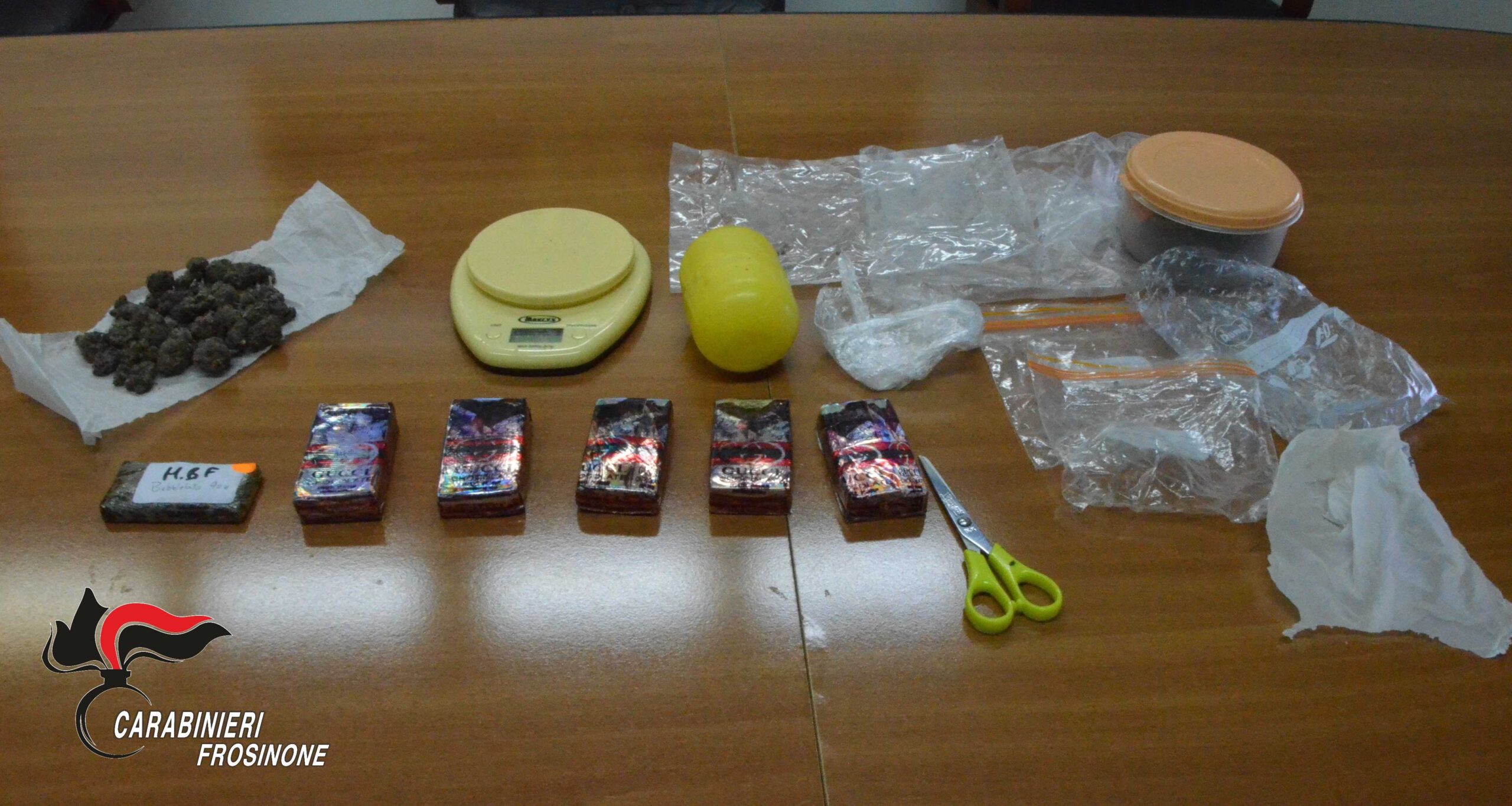 Durante un controllo presso il suo domicilio, i militari della Compagnia Carabinieri di Alatri lo hanno trovato in possesso di sei panetti di hashish per oltre 600 grammi e 30 grammi di marijuana.