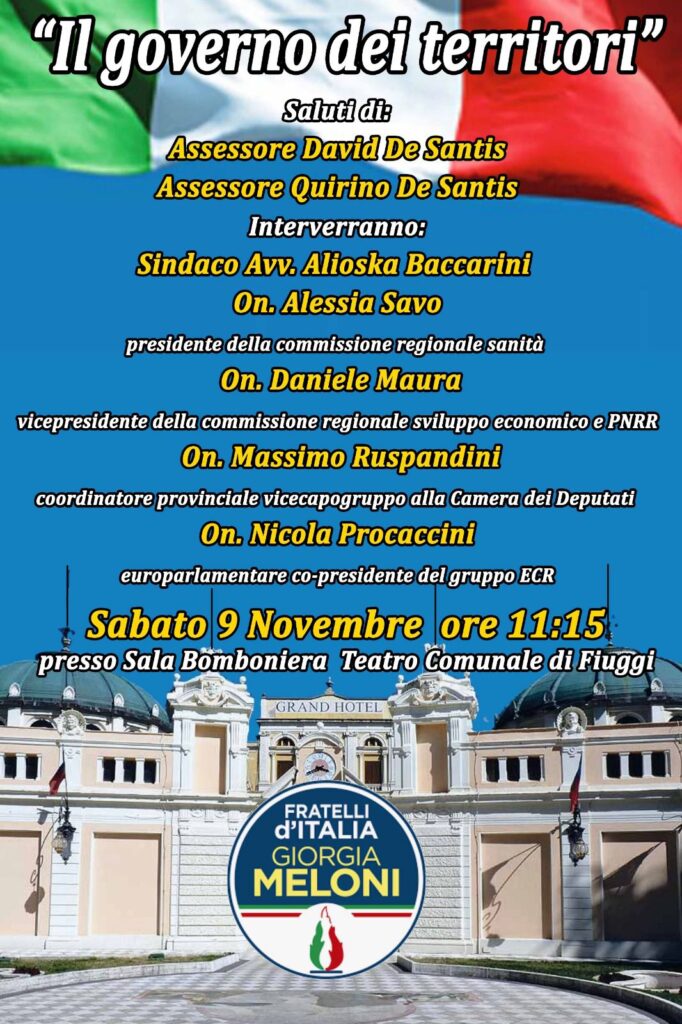 Fiuggi – “Il governo dei territori”, domani l’incontro con gli esponenti di Fratelli d’Italia