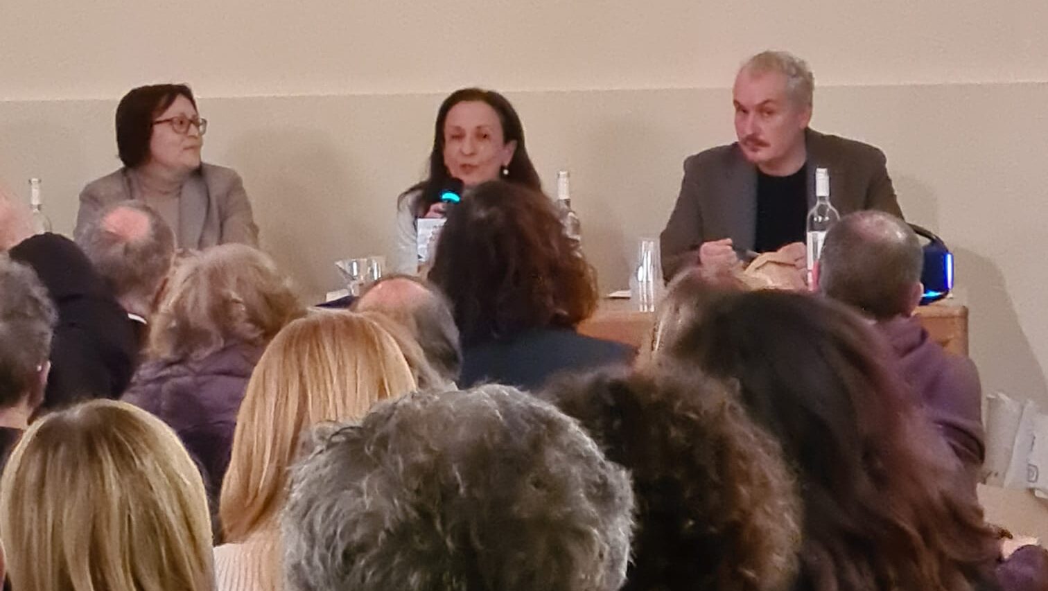 L’iniziativa, nella sala interna della villa Comunale di Frosinone, ha visto introdurre il dibattito Maria Lucia Giovannangelo con gli interventi di Stefano Ceccarelli, Paolo Autunno, Barbara Abbruzzesi, accompagnati dalle note di Federico Palladini e dalle letture di Fausta Dumano, prima dell’appassionante intervento del filosofo Filippo Cannizzo che ha emozionato e catturato i tantissimi presenti. L’evento ha visto una splendida cornice offerta dalla esposizione delle opere d’arte a cura di Rita Puccello, Simona Ricci, Liliana Porcarelli.