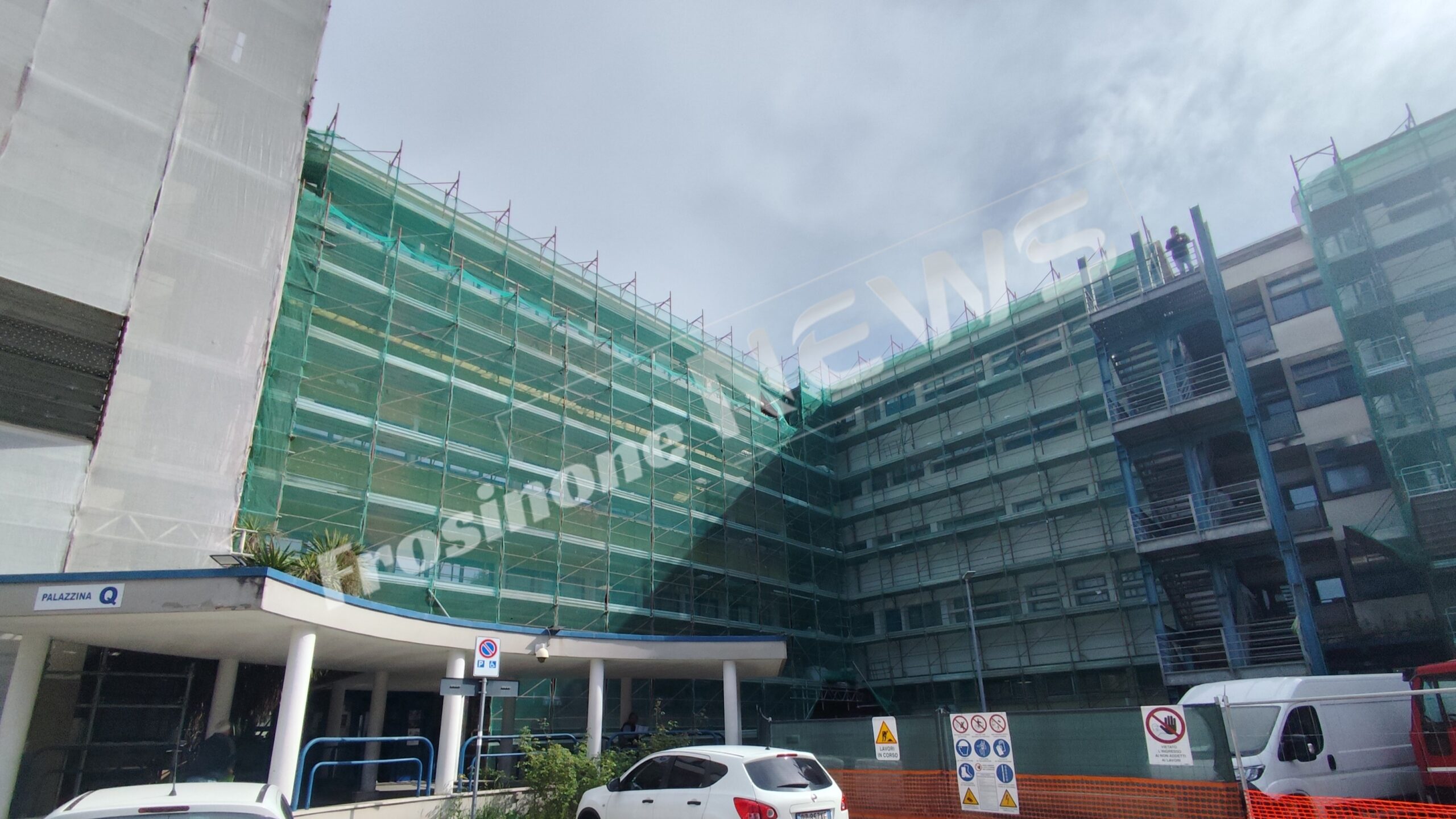 Una situazione nota, sia ai vertici della ASL che alle forze dell’ordine, puntualmente messe al corrente dalla stessa direzione dell’Azienda Sanitaria di Frosinone. La Palazzina Q dell’Ospedale “Fabrizio Spaziani” è interessata dal cantiere per i lavori di ristrutturazione ed ammodernamento, si tratta di interventi di manutenzione straordinaria. Gran parte della facciata è coperta da un ponteggio.