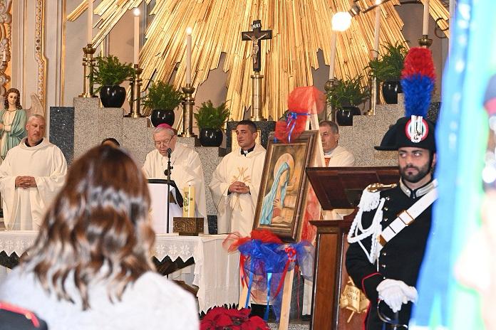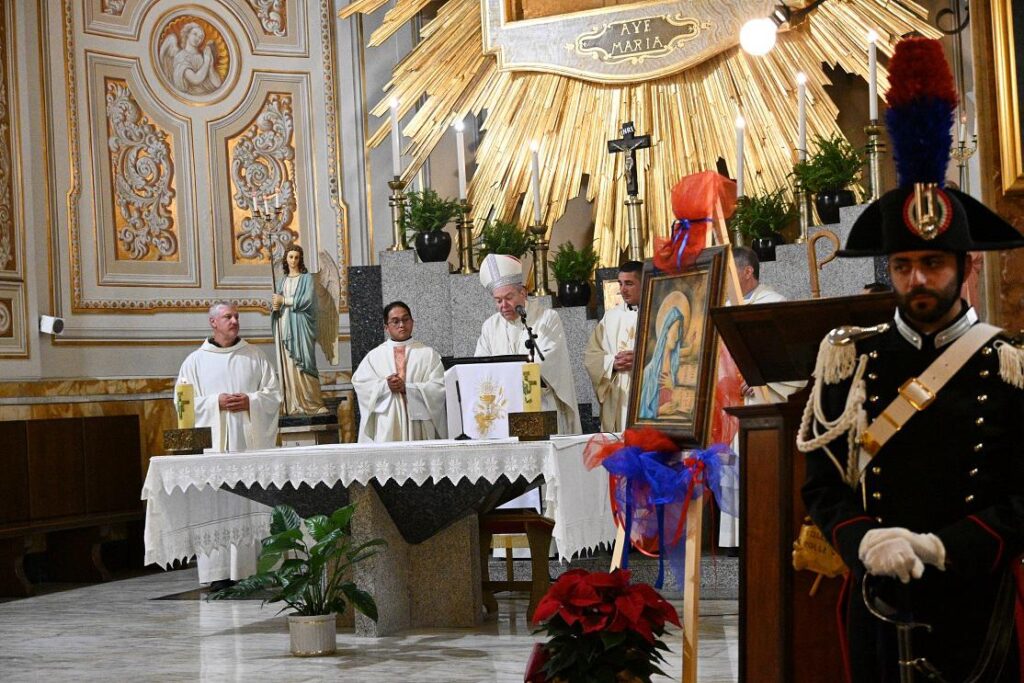 «A voi Carabinieri che lottate contro il male ogni giorno. La storia di questa terra che io sto imparando a conoscere ha bisogno di voi, come tutti noi abbiamo bisogno di voi. I cittadini. I più piccoli. Voi ci siete sempre, siete i Carabinieri della gente e questa vostra presenza è fonte di speranza e infonde sicurezza». Questo il passaggio più intenso dell’omelia pronunciata durante la celebrazione in onore della Patrona dell’Arma dei Carabinieri, un messaggio di riconoscenza e vicinanza che ha risuonato con forza ieri nel Santuario Madonna della Neve di Frosinone.