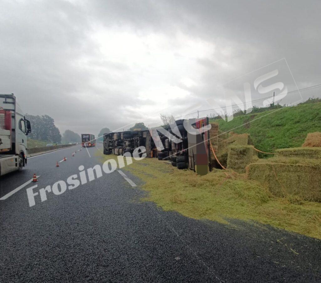 Ha perso l’intero carico composto da balle di paglia lungo le corsie sud dell’A1. L’incidente che si è verificato questa mattina nel tratto compreso tra Ferentino e Frosinone sta provocando enormi disagi alla circolazione autostradale.