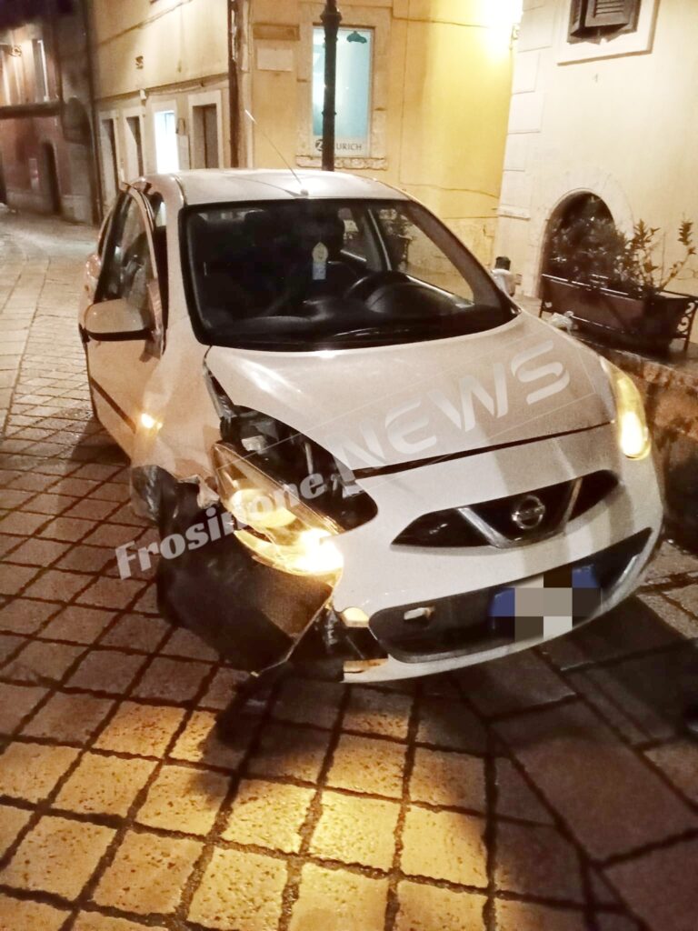 L’incidente si è verificato questa notte, poco dopo l’01:00, su via Giuseppe Cesari, nei pressi del vicolo che porta il nome del Vescovo Theodini, alle porte del centro storico della città di Arpino: evidentemente a causa della ben nota viscosità della pavimentazione artistica, soprattutto quando bagnata, una Nissan Micra guidata da un ragazzo del posto ha perso aderenza con il lastricato andando a sbattere contro una pietra contachilometri a ridosso del muretto bordo carreggiata.