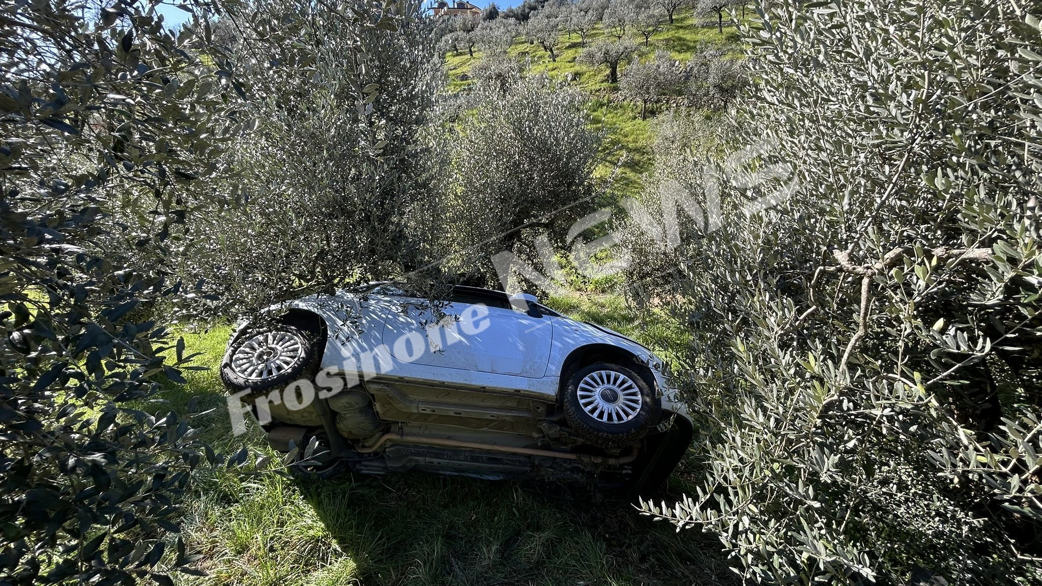 Incidente tra auto, una resta in bilico tra gli ulivi: due donne in ospedale