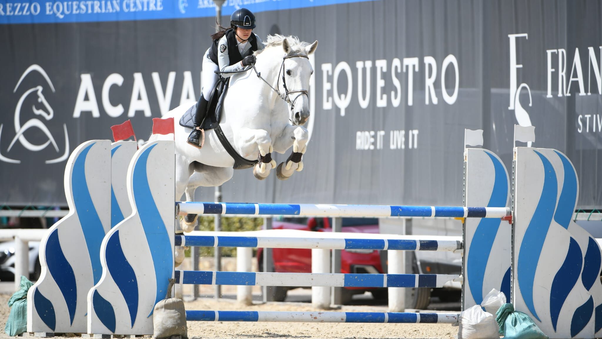 Nel fine settimana appena concluso, Mia ha brillato al prestigioso Toscana Tour 2026 dell’Arezzo Equestrian Centre, circuito internazionale di altissimo livello con 1.000 cavalli da 30 nazioni. In sella a Frizzle Zizzle e Barichello, ha ottenuto com  miglior piazzamento un 9° posto, ma il vero traguardo è stato il debutto in 130 — sia nella seconda giornata sia nel Gran Premio della domenica. Un salto di qualità fortemente voluto da Gianni Govoni, che ha visto in Mia la candidata ideale per affrontare questa sfida tecnica.