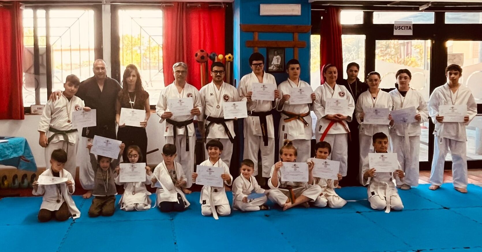 L’evento così ha visto il gruppo cimentarsi prima con un riscaldamento stretching dopodiché i più piccoli sono stati protagonisti di un circuito di agilità mentre i più grandi si sono esibiti nelle forma (kata) per poi passare allo sviluppo di un nuovo randori concludendo così l’evento con tecniche basate sulla difesa personale.
