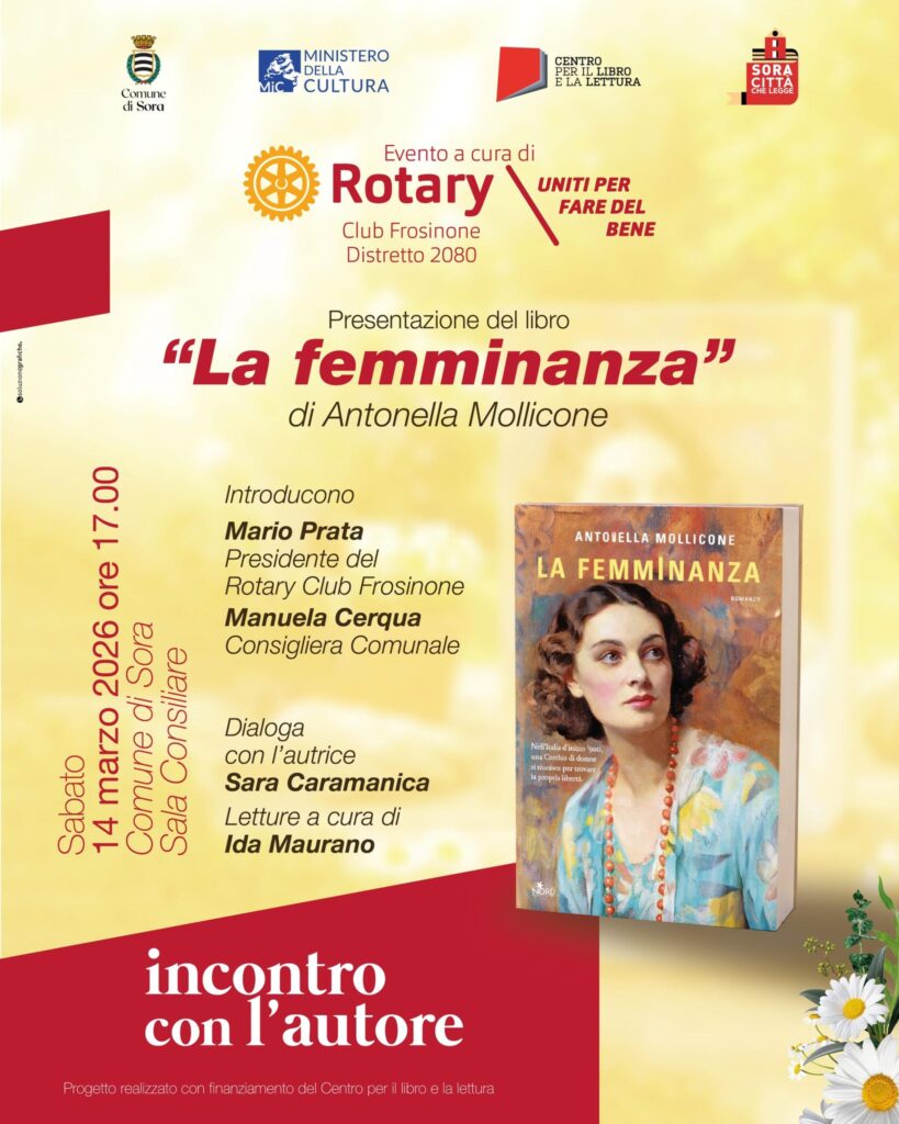 Sabato 14 marzo 2026 alle ore 17.00, presso la Sala Consiliare del Comune di Sora, si terrà la presentazione del libro “La femminanza” di Antonella Mollicone, un’occasione d’incontro e confronto, dedicata alla letteratura e alle storie che sanno parlare al nostro tempo.