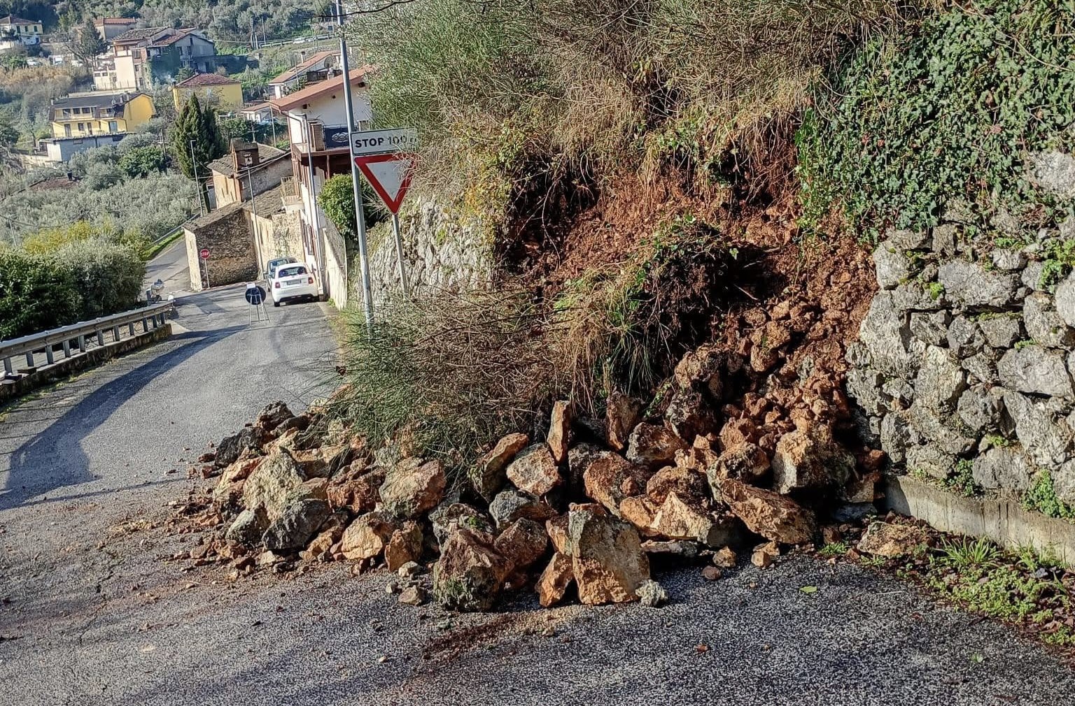 Ad Alatri, in via Madonna delle Grazie, grandi massi si sono staccati dalla collina sovrastante facendo crollare il muretto di contenimento e invadendo la carreggiata. La strada è stata chiusa per motivi di sicurezza. Sul posto sono intervenuti i Vigili del Fuoco, impegnati nelle operazioni di rimozione e nella verifica della stabilità del versante. Il tratto è momentaneamente interrotto.