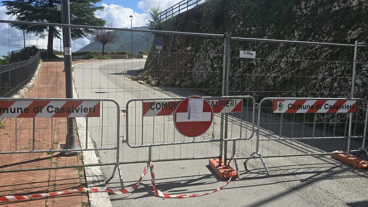 Il maltempo di mercoledì 10 settembre che ha flagellato e messo in ginocchio l’intera Ciociaria non ha risparmiato la Valle di Comino, dove si sono registrati diversi danni e disagi. Gli intensi fenomeni atmosferici hanno difatti lasciato strascichi importati con cui la popolazione si ritrova a fare i conti. Soprattutto a Casalvieri, dove i violenti nubifragi hanno causato uno smottamento che ha interessato il terrapieno sul quale si trova il Monumento ai Caduti, lungo Viale Guglielmo Marconi. La frana ha comportato la chiusura della strada che costeggia il Monumento sia al transito automobilistico sia a quello pedonale.