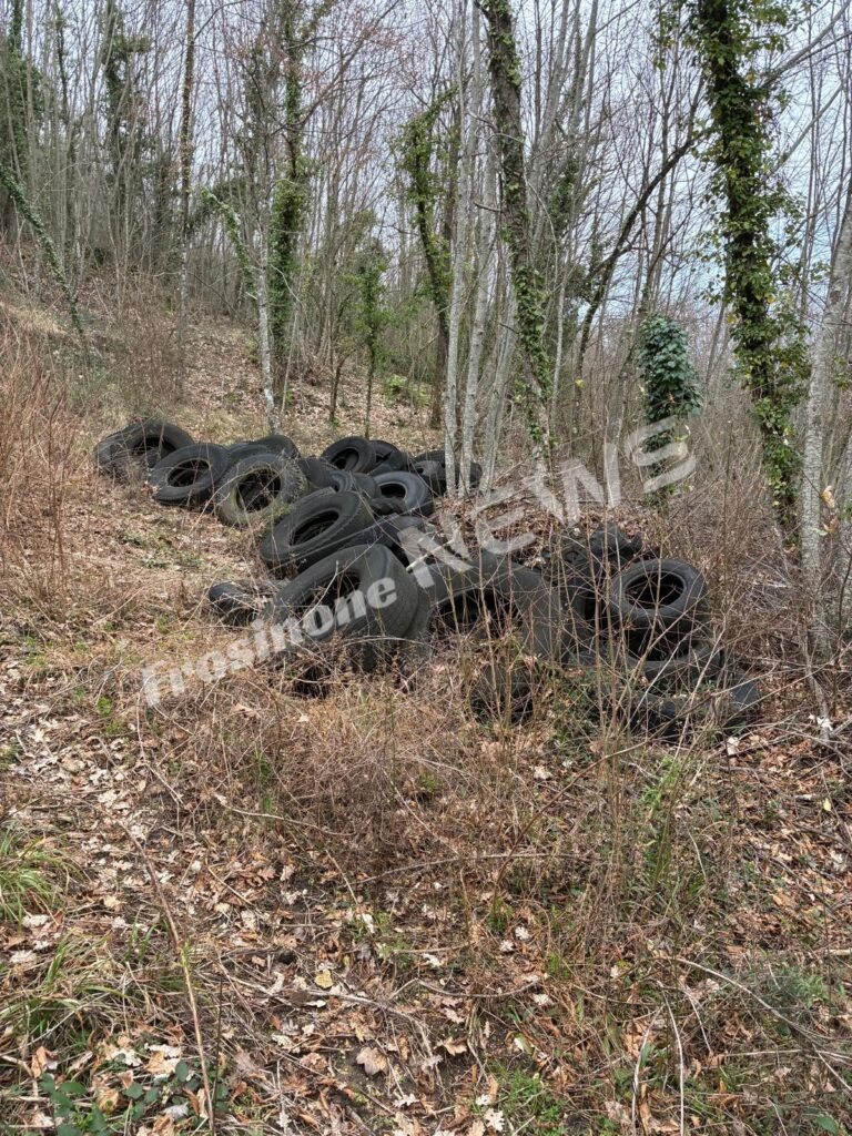 Un panorama deturpato da qualche ignoto senza scrupoli. Frosinone News aveva evidenziato le tracce di un sentiero solcato dal veicolo utilizzato per trasportare ed abbandonare gli pneumatici nella selva, accatastandoli tra gli alberi: uno scempio ambientale che, per la quantità di elementi scaricati, era possibile ricondurre ad un gommista, qualche officina o similari.