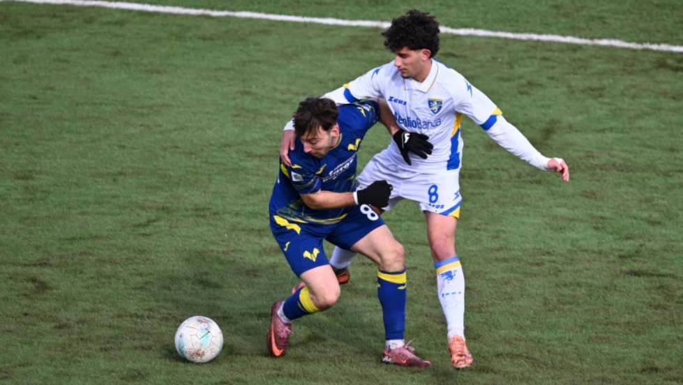 L’ultima giornata del girone d’andata del campionato di Primavera 1 vede il Frosinone impegnato nell’incontro casalingo, alla Città dello Sport di Ferentino, contro l’Hellas Verona. La partita è molto equilibrata, con le due squadre che si fronteggiano soprattutto nella zona centrale del campo. L’equilibrio si spezza al quarto d’ora: Peci punta Ndow in area di rigore, il centrocampista giallazzurro interviene in maniera scomposta e l’arbitro Silvestri concede il calcio di rigore. Dal dischetto Vermesan è glaciale, spiazza Rodolfo e porta in vantaggio il Verona. Dieci minuti più tardi l’arbitro Silvestri concede un altro penalty agli ospiti. Sugli sviluppi di un calcio d’angolo, Szimmonas addomestica un pallone difficile e calcia verso lo specchio, ma la conclusione viene deviata in mischia da un braccio della difesa ciociara. Dal dischetto si ripresenta Vermesan, che sceglie lo stesso angolo e batte nuovamente Rodolfo per lo 0-2. Il Frosinone prova a reagire con un calcio piazzato battuto da Grosso, sul quale Colley colpisce di testa senza però inquadrare la porta. I giallazzurri insistono con Raychev, che con un’azione personale entra in area e prova il destro, ma Castagnini blocca la conclusione.