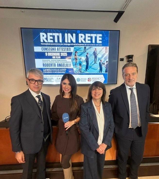 Roma – Si è svolto ieri, 9 dicembre 2025 alle ore 12.00, presso la sede di Confcommercio Imprese per l’Italia in Piazza Giuseppe Gioachino Belli 2 a Roma, l’evento conclusivo del progetto ‘Reti in Rete’, con la consegna ufficiale degli attestati ai 62 partecipanti provenienti dai Centri di Assistenza Tecnica del Lazio (Latina,Frosinone, Rieti, Viterbo e Roma).