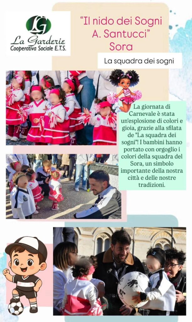 L’iniziativa prende spunto dallo spettacolo realizzato dall’Asilo Santucci in occasione della Grande Parata del Carnevale del Liri. In quell’occasione i piccoli hanno presentato “La squadra dei Sogni”, indossando divise bianco e nere scelte appositamente per richiamare i colori del Sora Calcio e rappresentare concretamente il senso di appartenenza alla comunità.