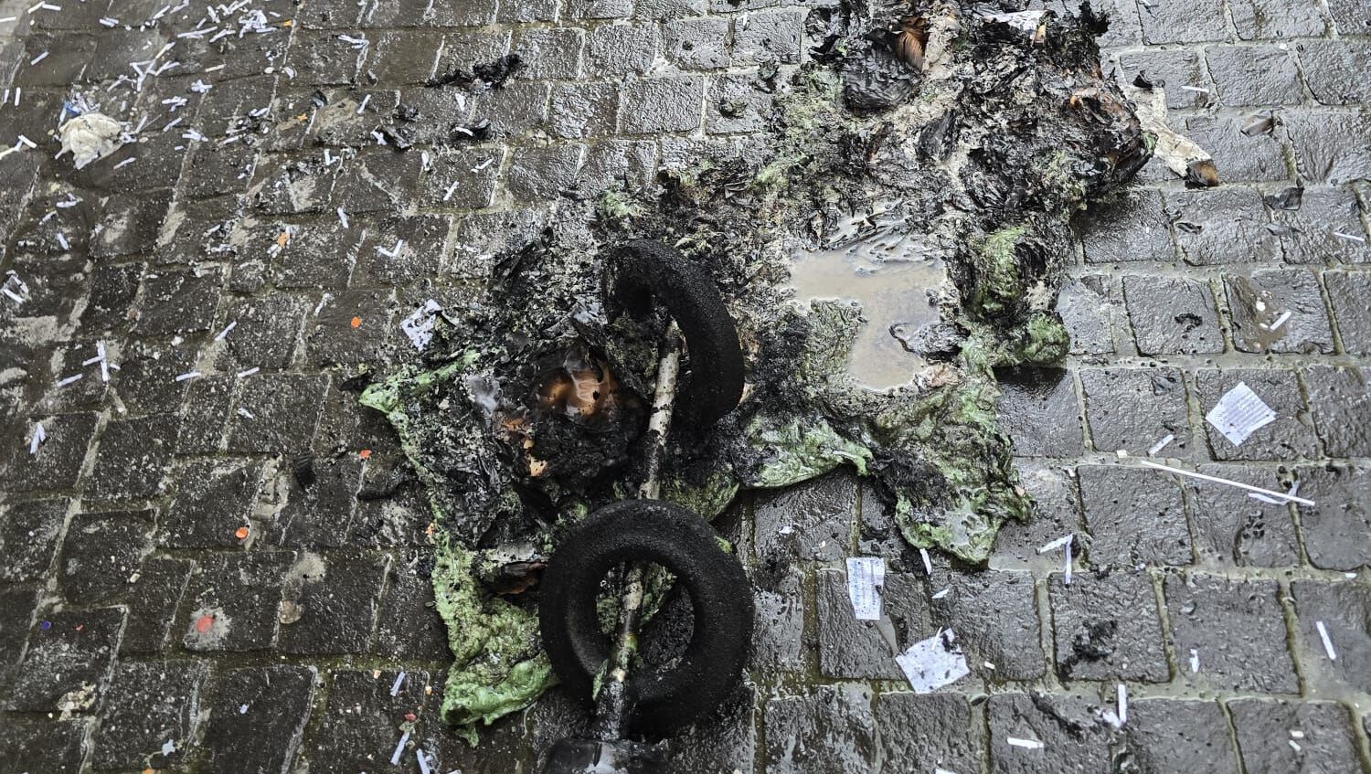 Sulla pavimentazione i resti arsi del contenuto e dello stesso bidone, riconoscibili solo le ruote dello stesso arredo. Un evento che indigna, delude, rattrista e torna a far riflettere sull’educazione dei ragazzi, sull’impoverimento del senso civico, ormai quasi perso in alcuni soggetti, e sulla fondamentale importanza del famoso “buon esempio” che gli adulti dovrebbero dare alle giovani generazioni.