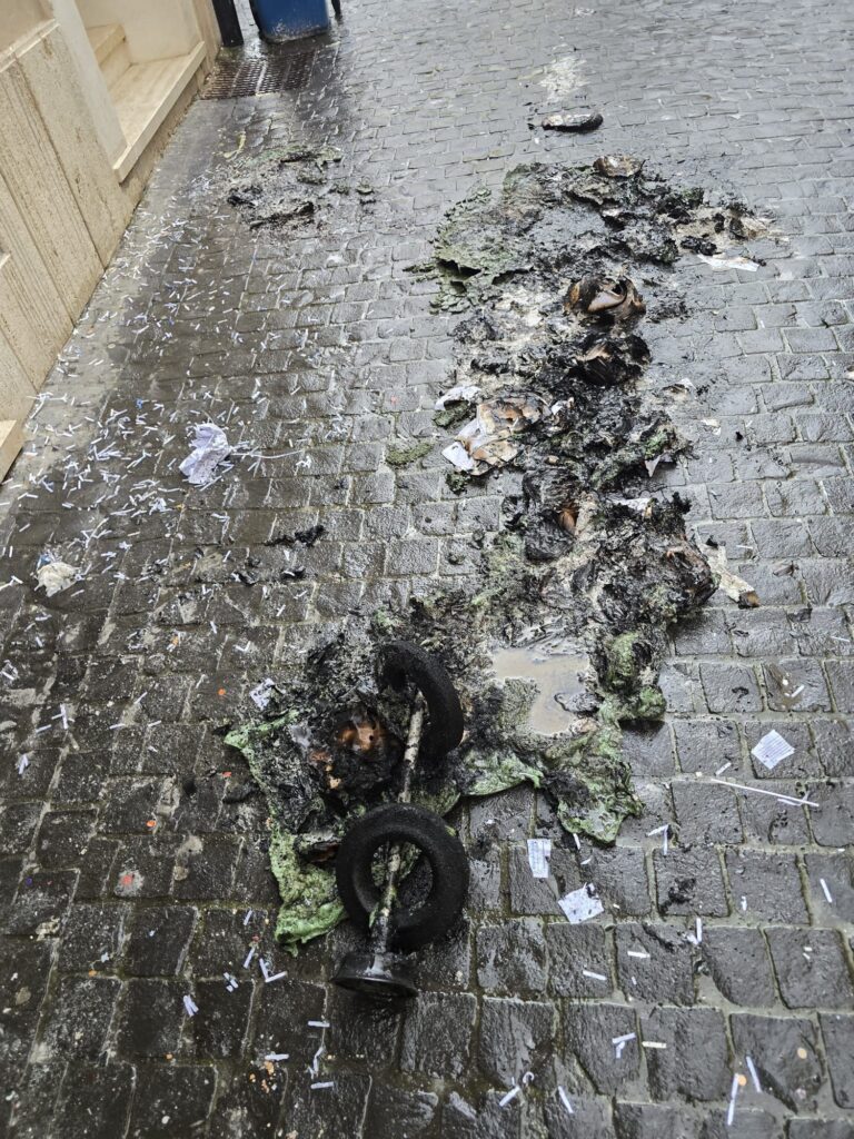 Sulla pavimentazione i resti arsi del contenuto e dello stesso bidone, riconoscibili solo le ruote dello stesso arredo. Un evento che indigna, delude, rattrista e torna a far riflettere sull’educazione dei ragazzi, sull’impoverimento del senso civico, ormai quasi perso in alcuni soggetti, e sulla fondamentale importanza del famoso “buon esempio” che gli adulti dovrebbero dare alle giovani generazioni.