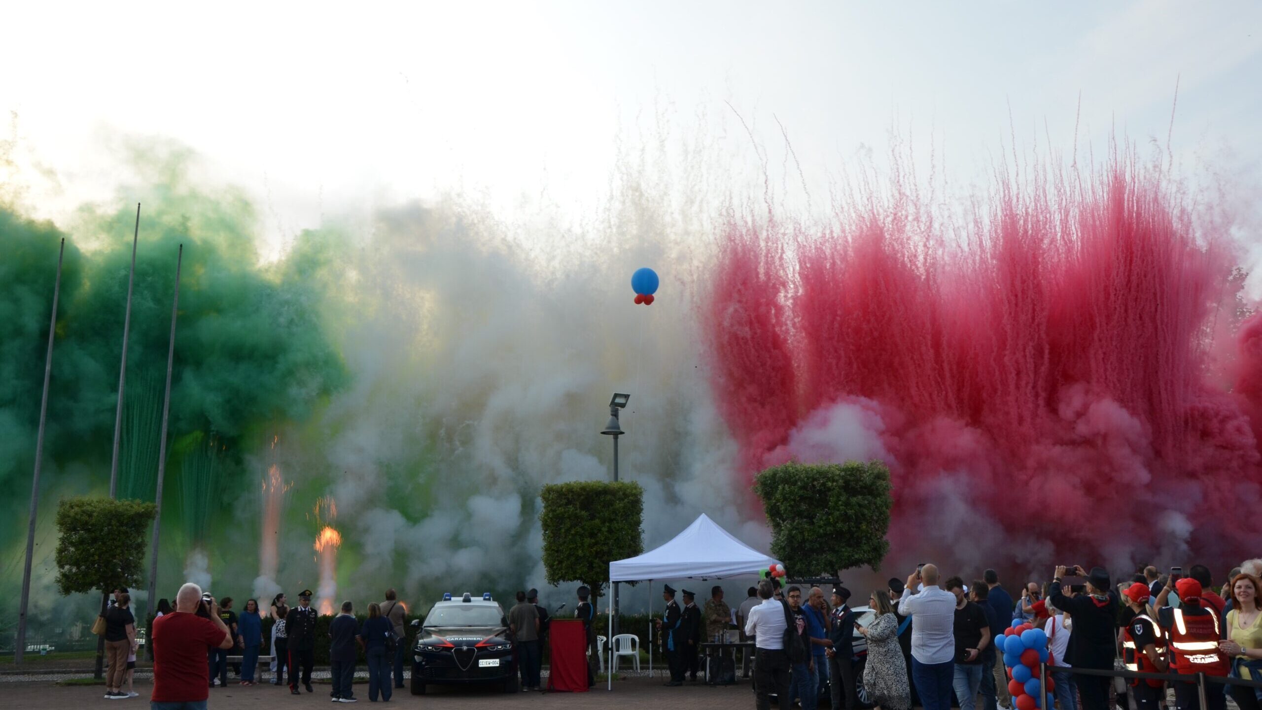 Spettacolo con fumogeni tricolore per la festa dell’Arma: l’omaggio dei Carabinieri alla Pirotecnica Mattei