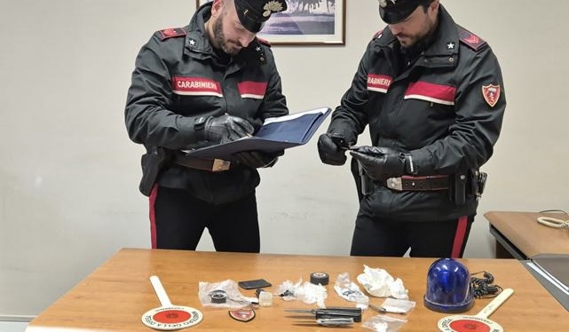 Le verifiche sono proseguite anche nell’abitazione del 40enne, dove i Carabinieri hanno trovato un lampeggiante blu del tipo in uso alle forze di polizia, ritagli in cellophane e ulteriore materiale per il confezionamento delle dosi da immettere sul mercato locale.