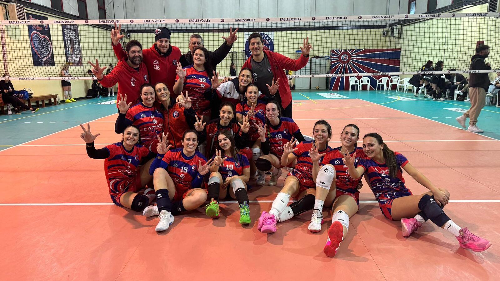 Il terzo set è quello più delicato dal punto di vista mentale: avanti di due parziali, contro una squadra che non ha più nulla da perdere. L’avvio è comunque solido. Le Eagles restano avanti fin dalle prime rotazioni, mantenendo sempre 3-4 punti di margine. La fase difensiva continua a essere il marchio di fabbrica della gara: coperture attente, rigiocate pazienti, volontà di non far cadere nulla. Sul 12-8 le rossoblù consolidano il vantaggio grazie alla continuità in cambio palla. Gli scambi si allungano e lo spettacolo in difesa è evidente: è una squadra che si aiuta, che si sostiene, che resta compatta. Dal 16-11 arriva un nuovo strappo fino al 19-12, momento in cui entra Iacovacci. Un piccolo passaggio a vuoto e qualche errore di troppo consentono a Sora di rientrare fino al 21-16. È l’unico momento in cui il set sembra potersi riaprire. La risposta, però, è da squadra matura: niente frenesia, gestione del cambio palla, scelta giusta nelle soluzioni offensive. Le Eagles chiudono 25-15, senza concedere ulteriore spazio.