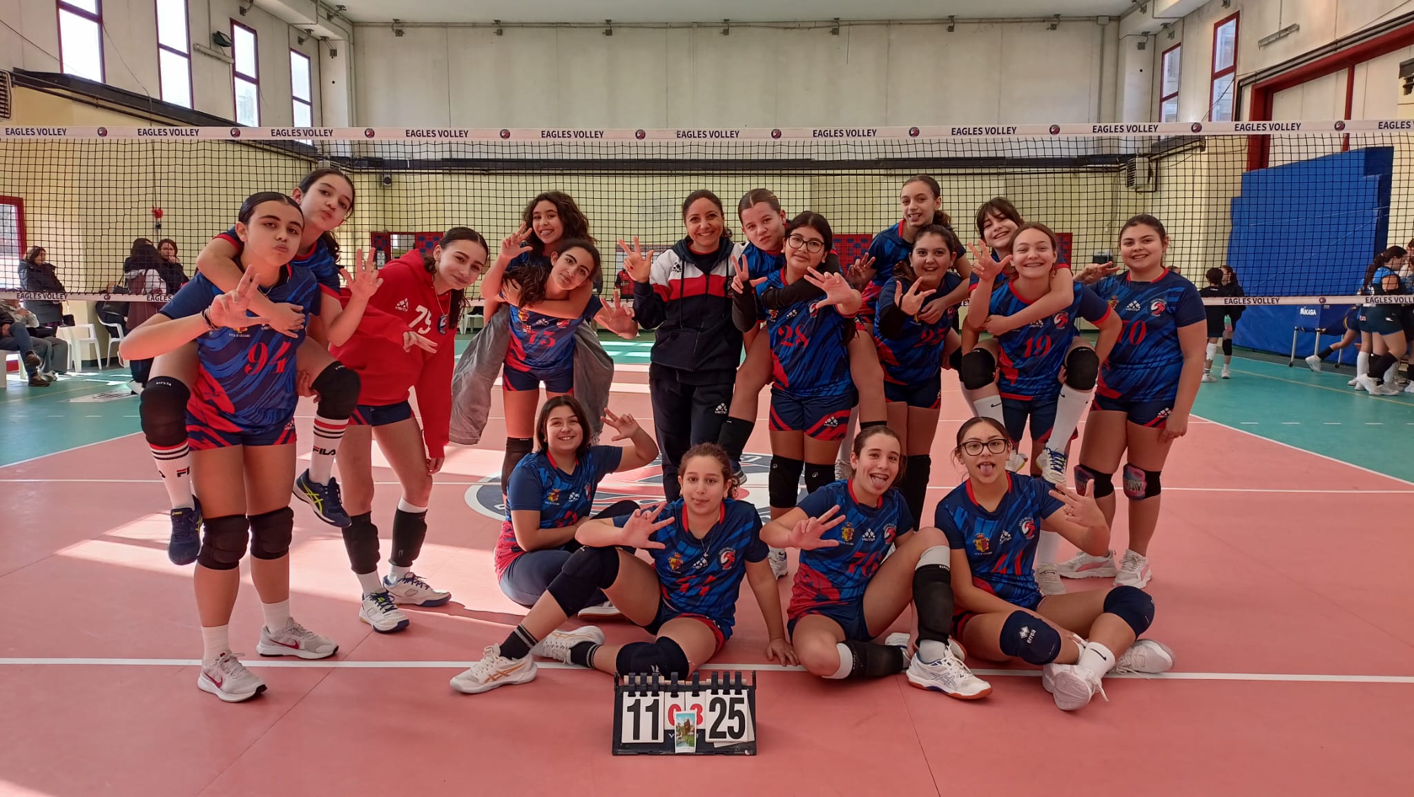 Le giovani aquilotte di Coach Battiati vincono agevolmente contro il Cus Cassino e blindano la piazza d’onore in classifica alle spalle dell’Olimpia Sora. Questo il punteggio: Eagles Volley Ceccano-Cus Cassino Volley:3-0 (25-13/25-7/25-11). In attesa quindi delle ultime due gare della regular season, in preparazione della fase più calda, quella dei playoff, le rossoblù festeggiano il matematico passaggio del turno. Un gruppo molto numeroso e altrettanto giovane quello a disposizione del coach che nel corso dell’ultimo impegno casalingo, quello col Cus appunto, si è potuto permettere di far ruotare per intero.